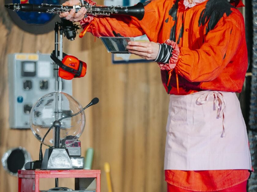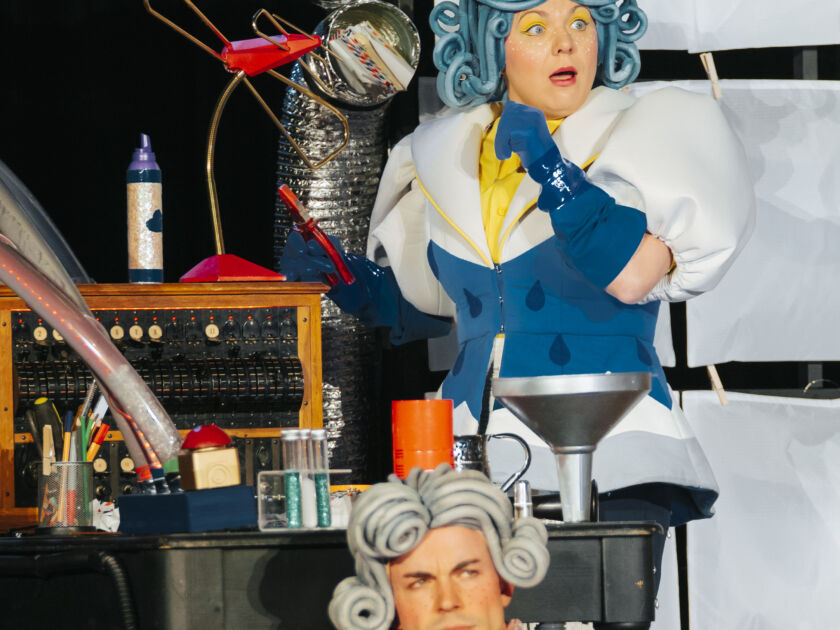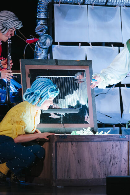 Sebastian Schwab’s children’s opera for one singer and two performing instrumentalists takes the audience on a wild ride through every type of weather: from blue-sky, sun-splashed joy to Frau Holle’s hail-pelting arias of fury.