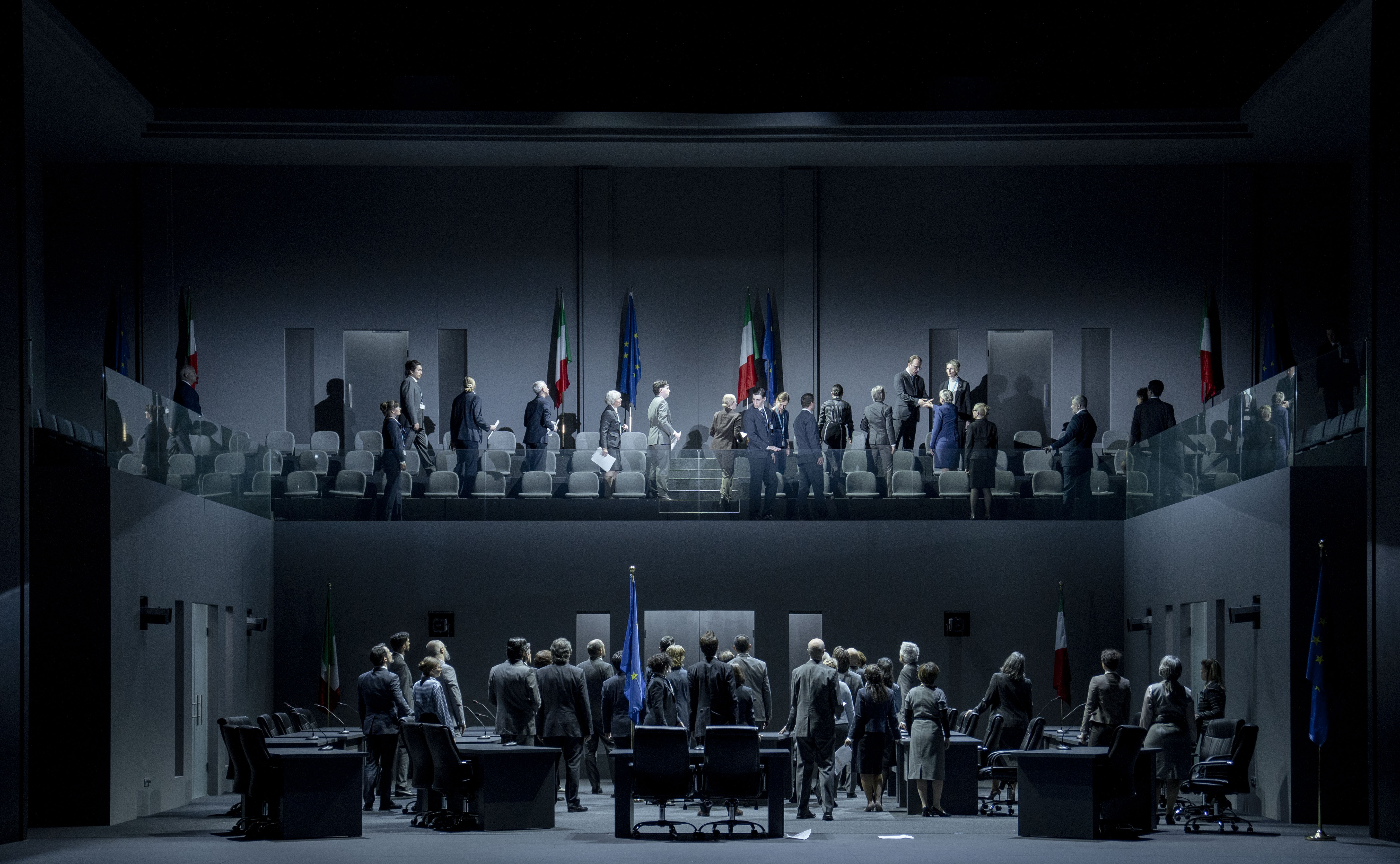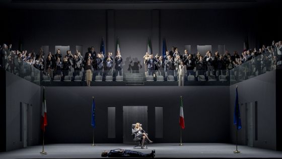 Probenstart „La clemenza di Tito“ 2024: 1. Reihe, v.l.n.r.: Anna Tetruashvili (Annio), Robert Carsen (Regie und Licht), Gianluca Capuano (Musikalische Leitung), Mélissa Petit (Servilia), Cecilia Bartoli (Sesto), Alexandra Marcellier (Vitellia): 2. Reihe: Gideon Davey (Bühne und Kostüme), Thomas Achitz (Video), Ramses Sigl (Choreografie), Pedro Beriso (Korrepetition), Daniel Behle (Tito Vespasiano), Andrea del Bianco (Musikalische Assistenz und Cembalo), Ildebrando D'Arcangelo (Publio)
