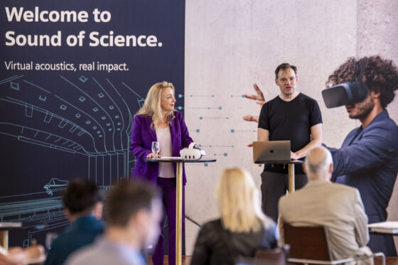 Präsentation „Sound of Science“ by Siemens: Peter de Clerk (Senior Director Marketing, Simcenter Portfolio, Siemens), Kristina Hammer (Präsidentin der Salzburger Festspiele), Stephan Frucht (Künstlerischer Leiter des Siemens Arts Programms), Edwin Pfanzagl-Cardone (Leitung Akustik, Salzburger Festspiele)