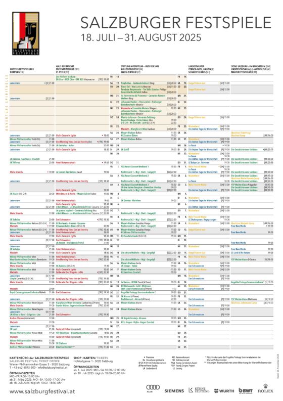 Presse Werbemittelbestellung 2025 Werbemittelbestellung 2025 Keine Honorarpflicht bei aktueller Berichterstattung über die Salzburger Festspiele und Nennung des Fotocredits. Foto-ID: #262056 Leporello Download Foto-ID: #262042 Festspielprogramm 2025 Download Foto-ID: #262052 Festspieljournal Die Presse Download Foto-ID: #262044 Festspieljournal SN Download Foto-ID: #262048 SF25_Spielplan_A1_hoch Download Foto-ID: #262046 Plakat Jahressujet 2025_A0 Download Foto-ID: #262054 Postkarte Jung&Jeder_Sujet SF25 Download Foto-ID: #262050 Postkarten Hotel Metamorphosis Download Foto-ID: #262040 Flyer Kultur braucht Raum Download Foto-ID: #212227 #meinFESTSPIELMOMENT Beklebung 2025 Download