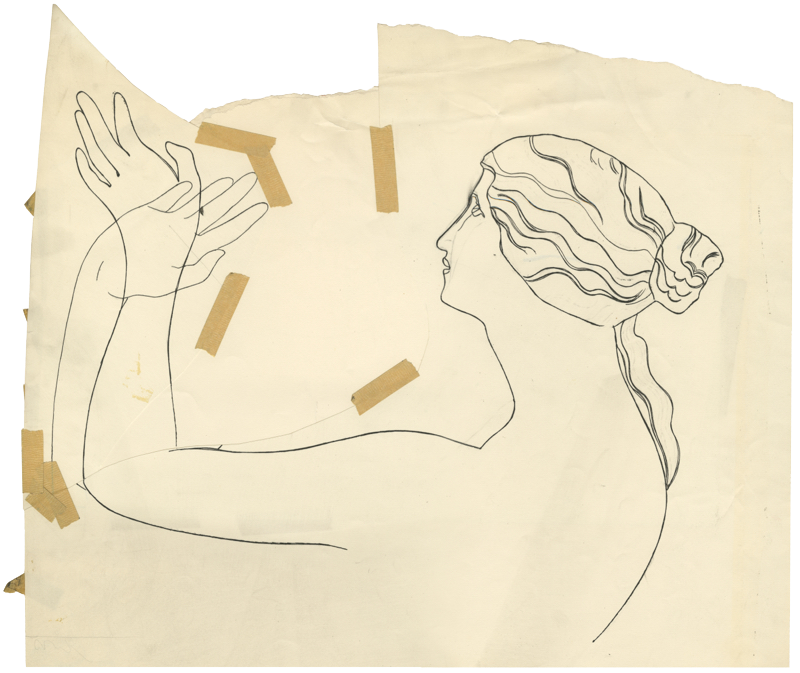 Andy Warhol, Portrait of a Woman, Two Hands, c. 1955, collage, ink and graphite on paper (39.1 x 45.3 cm) Courtesy & © Photo: Daniel Blau, Salzburg, 2025 © The Andy Warhol Foundation for the Visual Arts, Inc. / Bildrecht Wien, 2025