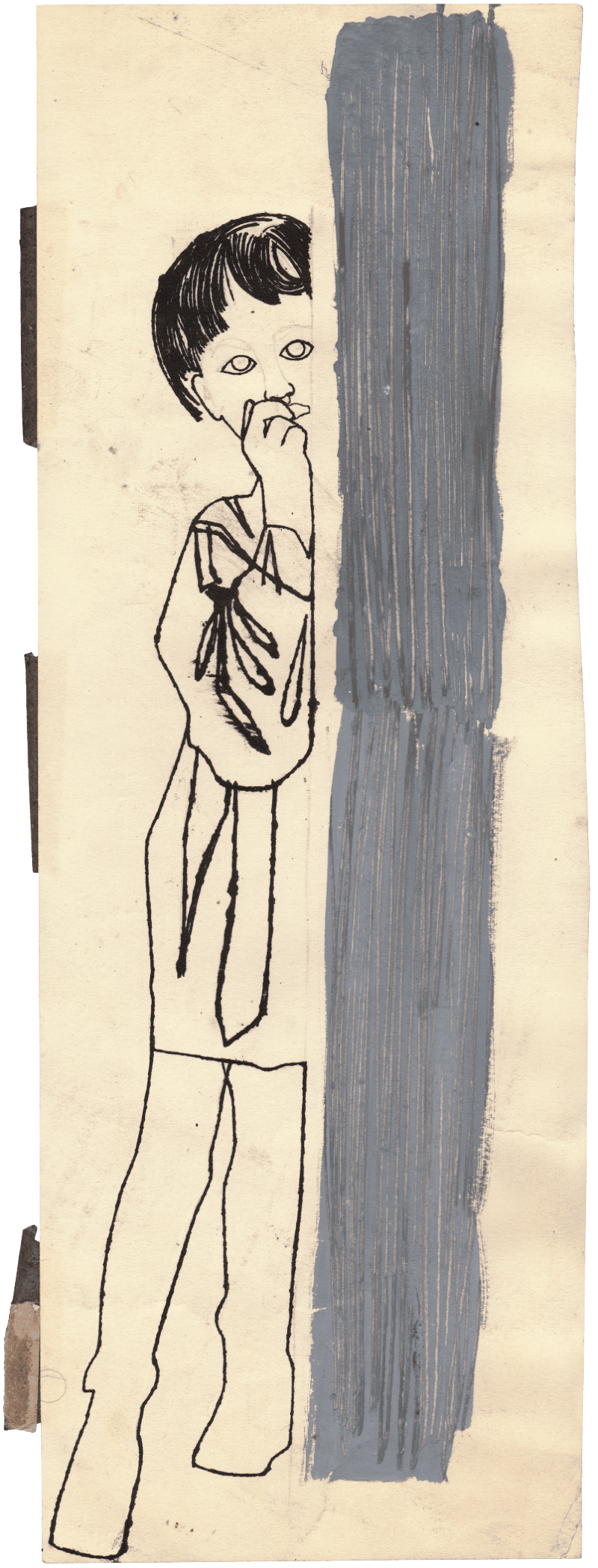 Andy Warhol, Girl Biting Finger, c. 1954, ink, graphite and tempera on paper (35.6 x 12.7 cm)