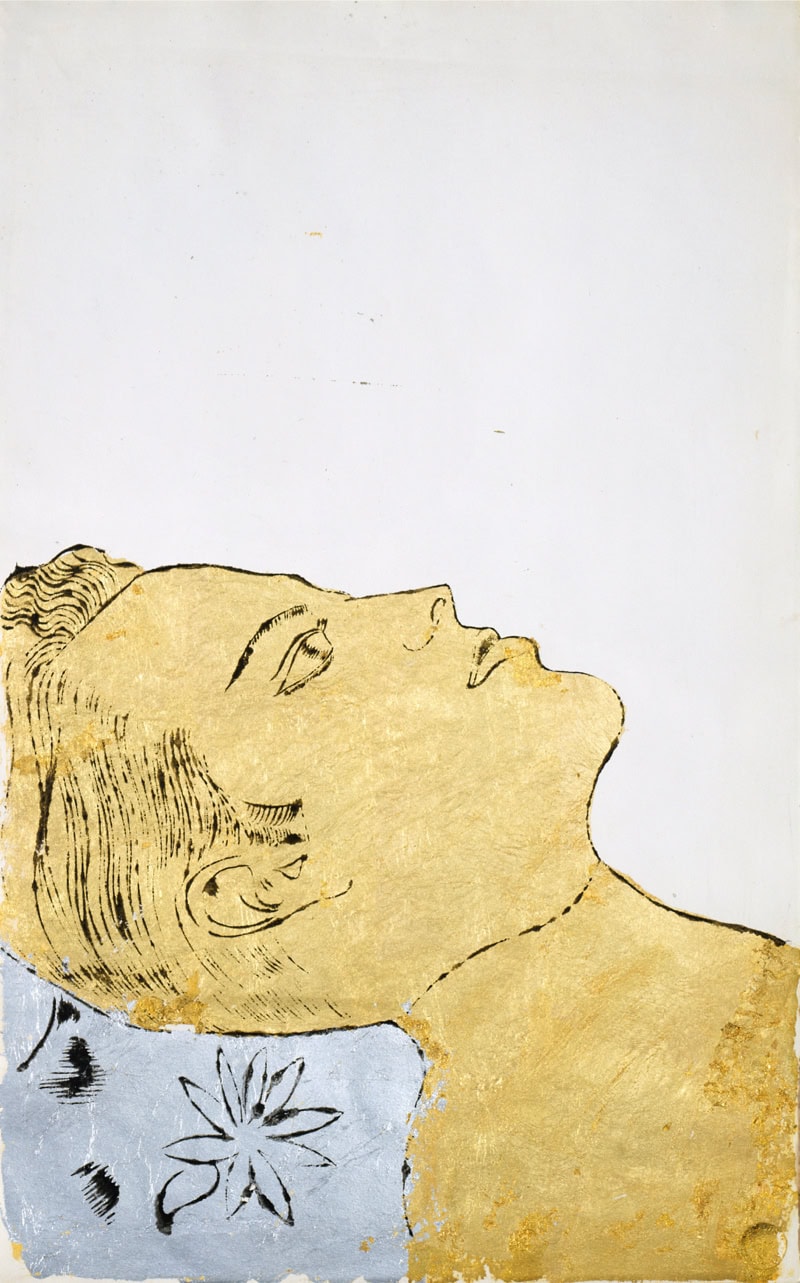 Andy Warhol, Unidentified Male, 1950s, gold leaf, silver leaf and ink on Strathmore paper (8.4 x 37.1 cm; 1998.1.2046)