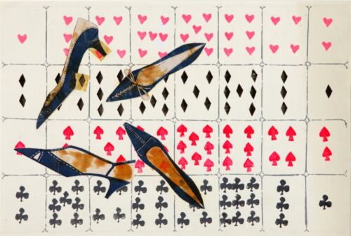 Andy Warhol, Four Shoes with Playing Card Suits, 1950s, tempera and printed collage on Strathmore paper (38.7 x 61 cm; 1998.1.1295)