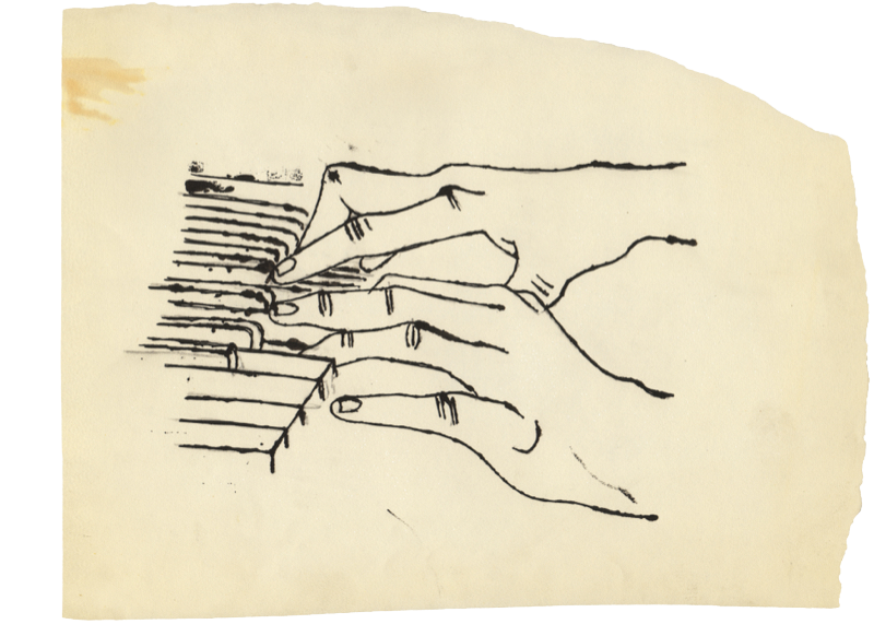 Andy Warhol, Two Hands Playing Piano, c. 1954, ink and graphite on paper (32.4 x 30.3 cm)